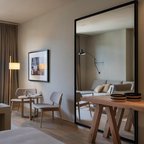 Air conditioning and individually adjustable heating ensure that rooms maintain comfortable temperatures. Guests can enjoy the garden view from a balcony or terrace. The rooms have a king-size bed and a sofa bed. Extra beds can be requested. A safe and a minibar are also available. A trouser press is provided for guests' convenience. A direct dial telephone, a television with satellite/cable channels, a DVD player and WiFi are provided as well. Bathrooms are equipped with a shower, a bathtub and a whirlpool bath. A hairdryer and a telephone are provided. Wheelchair-friendly rooms with wheelchair-accessible bathrooms are also available. The hotel has family rooms, non-smoking rooms and smoking rooms.