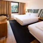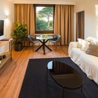Air conditioning and central heating ensure that rooms maintain comfortable temperatures. Guests can enjoy the garden view from a balcony or terrace. The rooms have a queen-size bed and a sofa bed. Extra beds can be requested. A safe, a minibar and a desk are also available. A trouser press is provided for guests' convenience. A direct dial telephone, a TV and WiFi (no extra charge) are provided as well. A hairdryer and a telephone are available in the bathrooms, which are equipped with a shower and a bathtub. Wheelchair-friendly rooms with wheelchair-accessible bathrooms are also available. The hotel has family rooms and non-smoking rooms.
