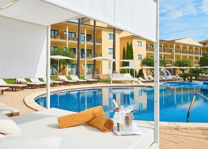 This elegant luxury hotel is ideally situated, just 250 metres from a fine-sand beach. The centre of San Comas, with numerous shopping and entertainment venues, is only a short walk away. Palma airport is 60 km from the hotel.