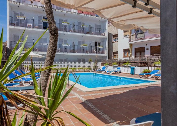 This simple hotel is ideally situated close to the centre of Sitges. Restaurants, bars and public transport links may be found in the surrounding area; shopping venues are only 100 metres away. The nearest beach is just 250 m from the hotel.