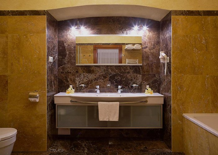 Rooms are equipped with air conditioning and individually adjustable heating. All rooms are carpeted and include a queen-sized bed and a sofa bed. Extra beds can be requested. A safe, a minibar and a desk are also available. Guests will also find a mini fridge included among the standard features. Further amenities include an ironing set and a trouser press. A direct dial telephone, a television with satellite/cable channels and WiFi are provided as well. Guests will also find slippers in their rooms. A hairdryer and bathrobes are provided in the bathrooms, which include a shower and a bathtub. For extra comfort in the bathrooms, guests are offered cosmetic products. Wheelchair-friendly rooms with wheelchair-accessible bathrooms are also available. The hotel has family rooms, non-smoking rooms and smoking rooms.